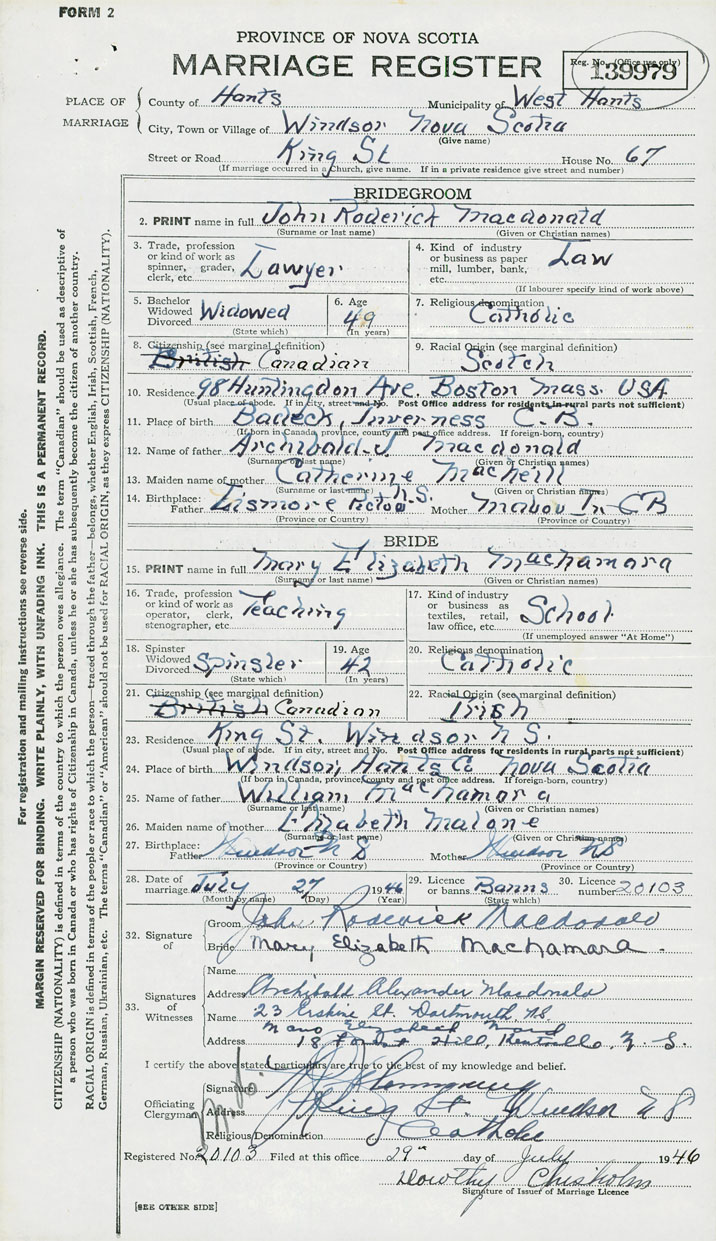 2. PRINT name in full MacDonald, John Roderick