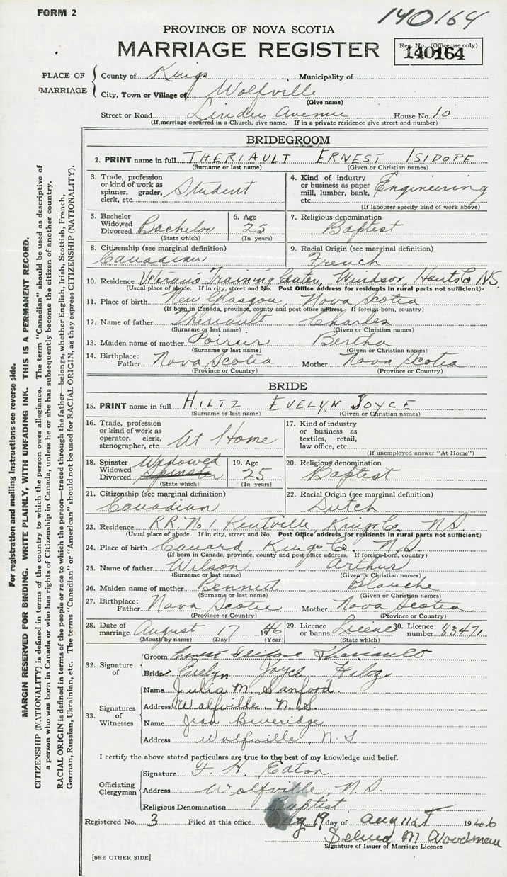 Groom Ernest Isidore Theriault