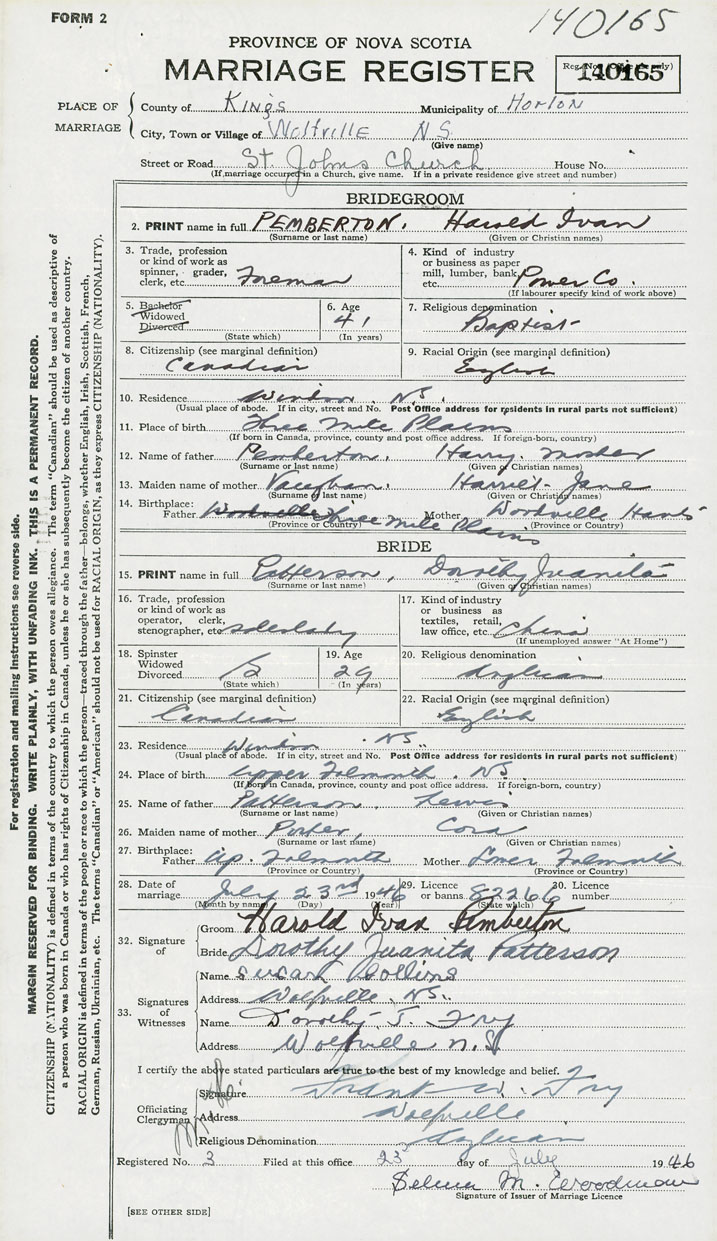 Groom Harold Ivan Pemberton