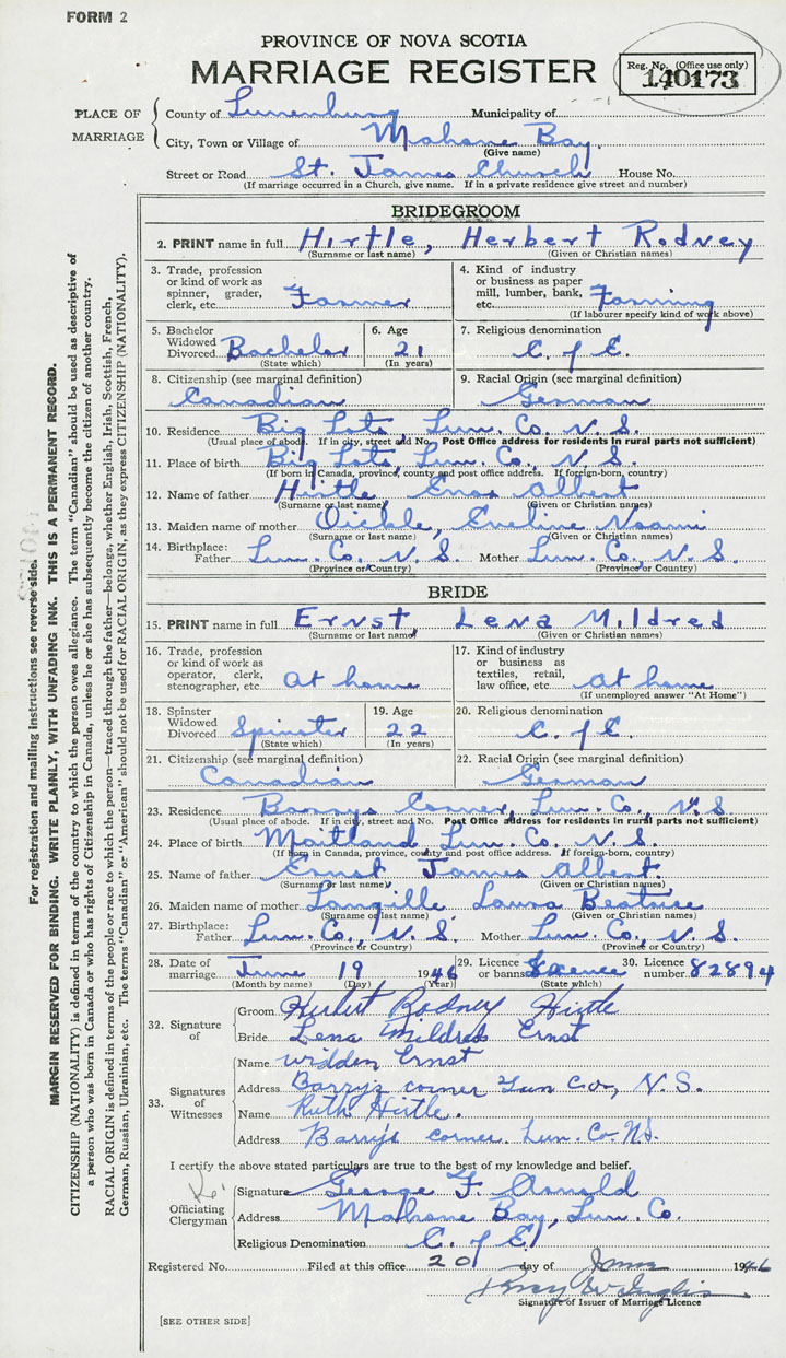 Groom Herbert Rodney Hirtle