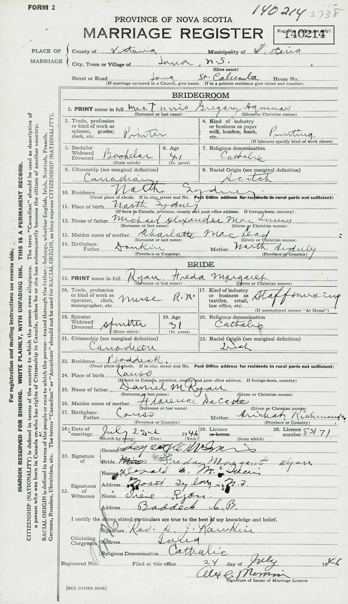 2. PRINT name in full MacInnis, Gregory Aquinas