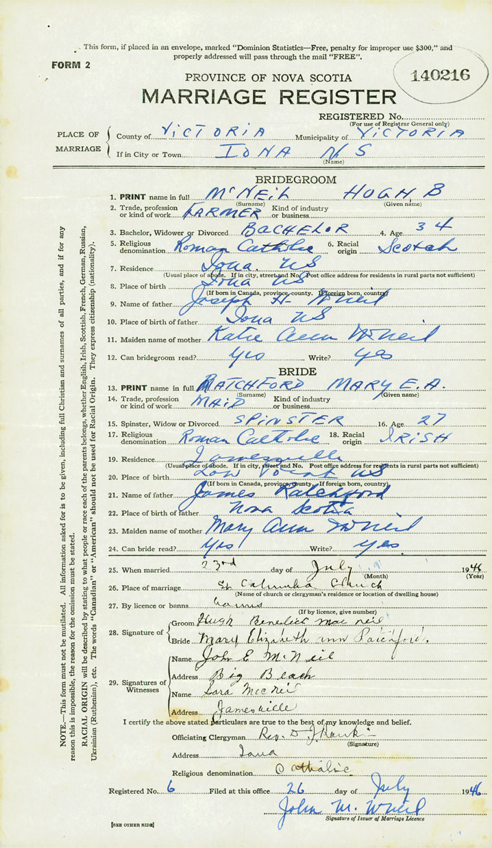 1. PRINT name in full McNeil, Hugh Benedict