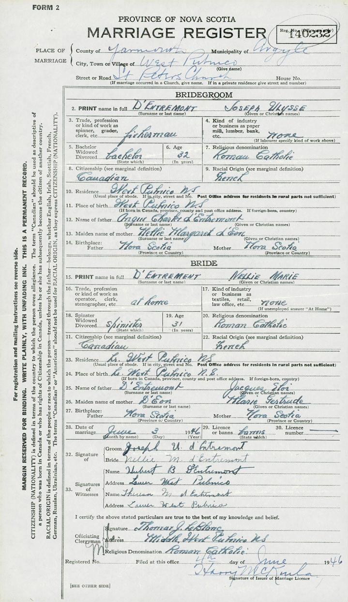 2. PRINT name in full d'Entremont, Joseph Ulysse