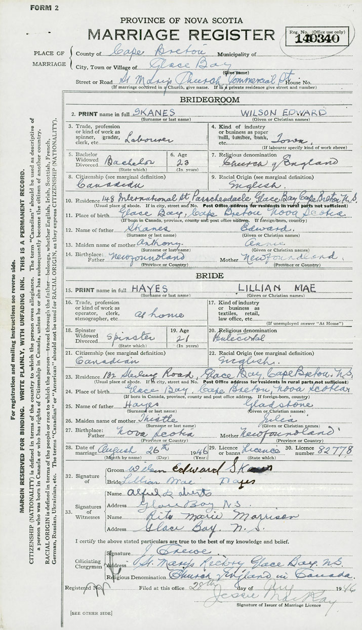 Groom Wilson Edward Skanes