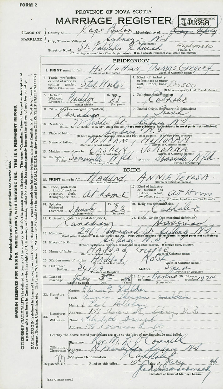 15. PRINT name in full Haddad, Annie Teresa