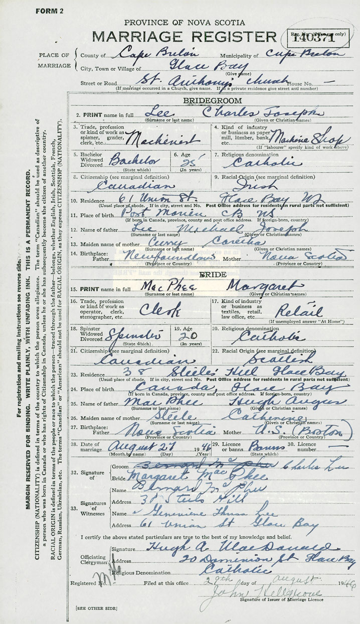 Groom Charles Joseph Lee