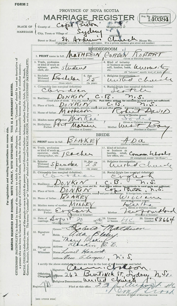 2. PRINT name in full Matheson, Gordon Robert