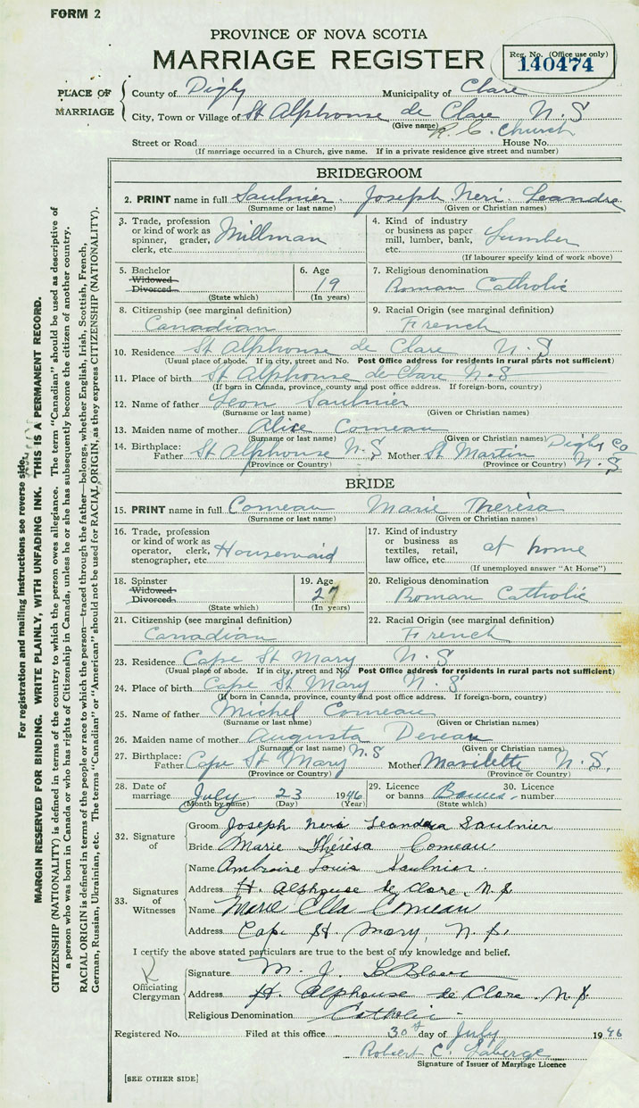 2. PRINT name in full Saulnier, Joseph Neri Leandre