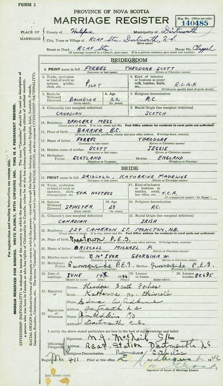 Groom Theodore Scott Forbes