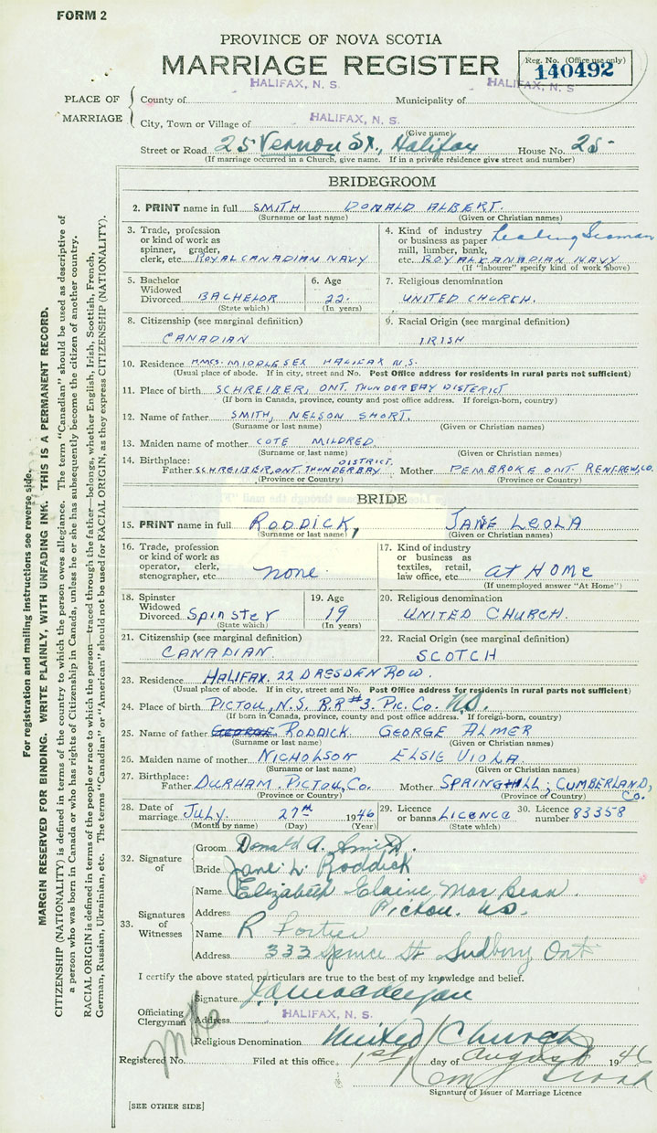 Groom Donald Albert Smith