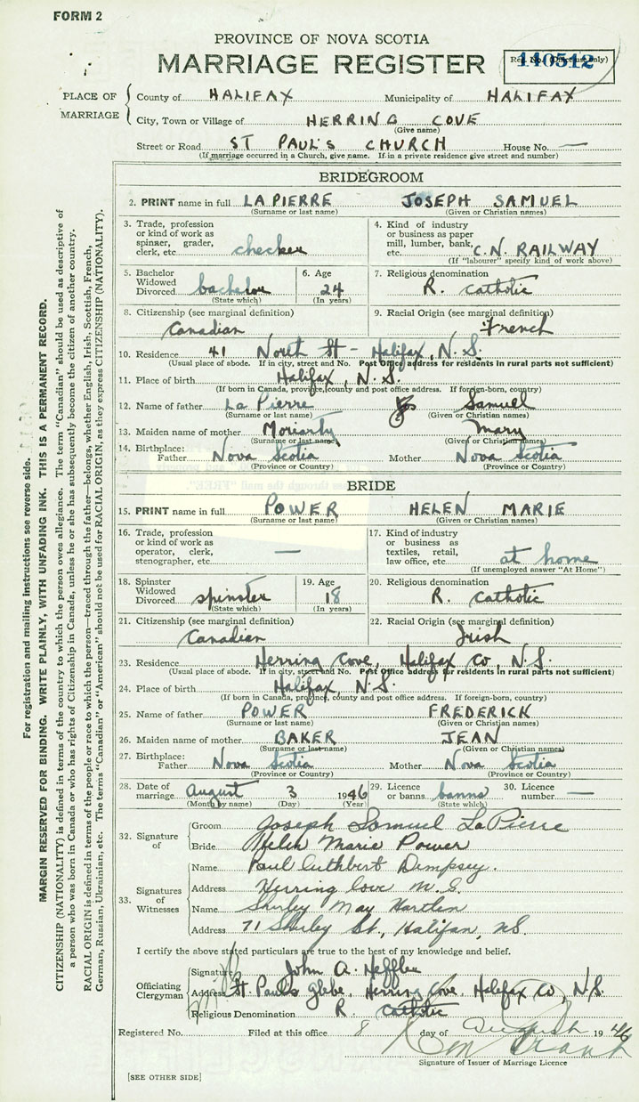 2. PRINT name in full Lapierre, Joseph Samuel