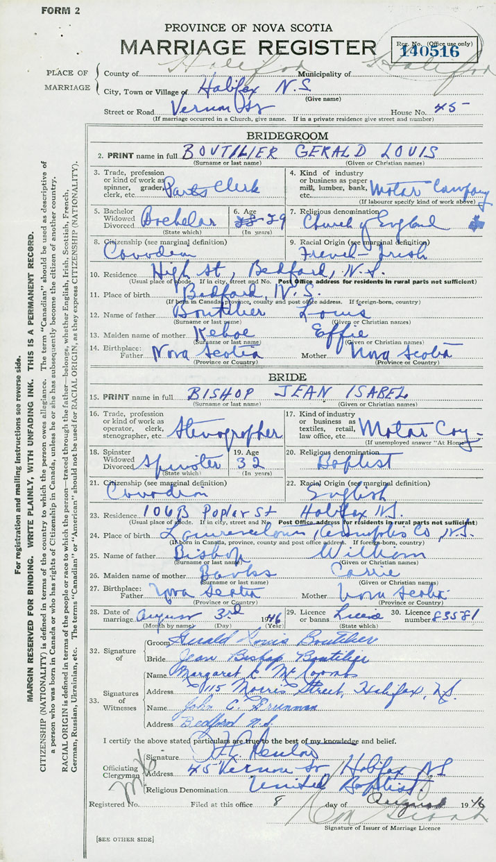 Groom Gerald Louis Boutilier
