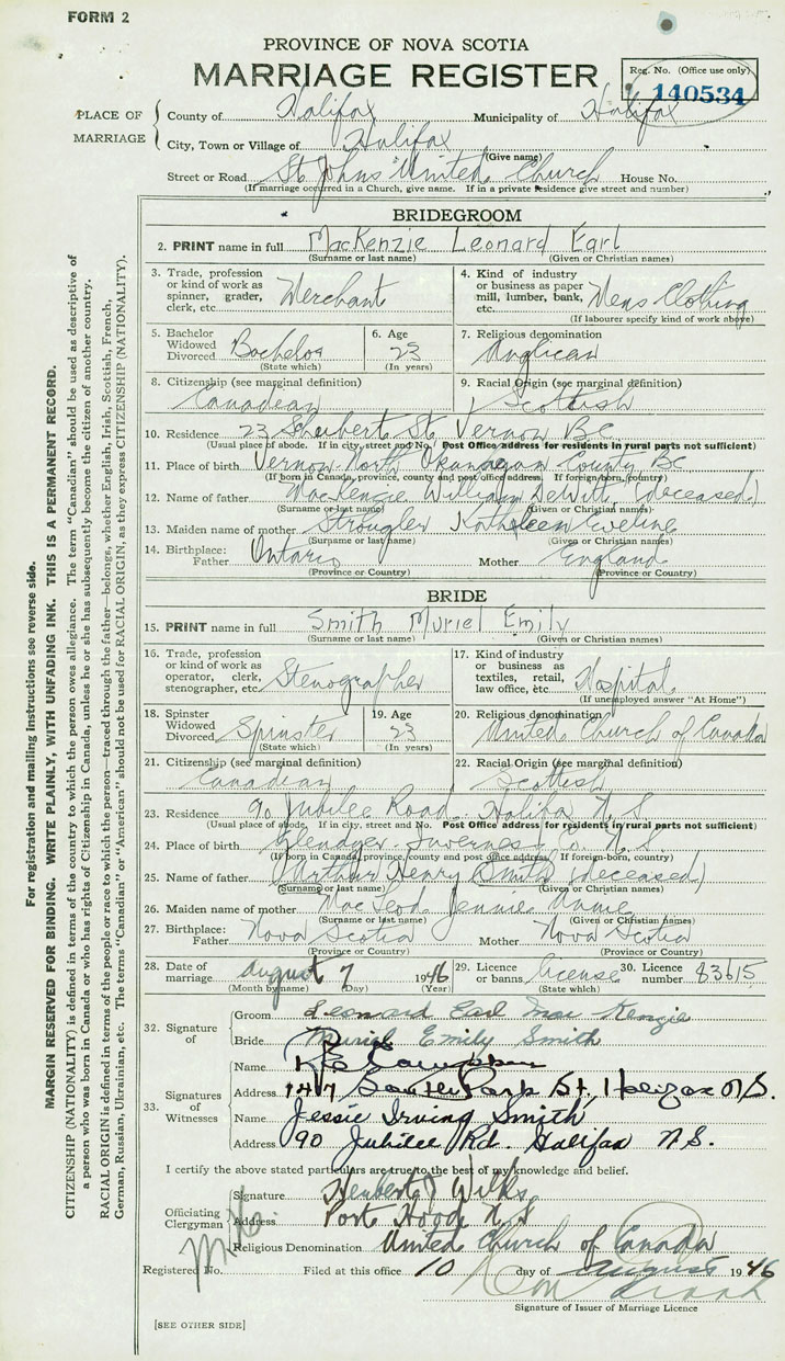Groom Leonard Earl MacKenzie