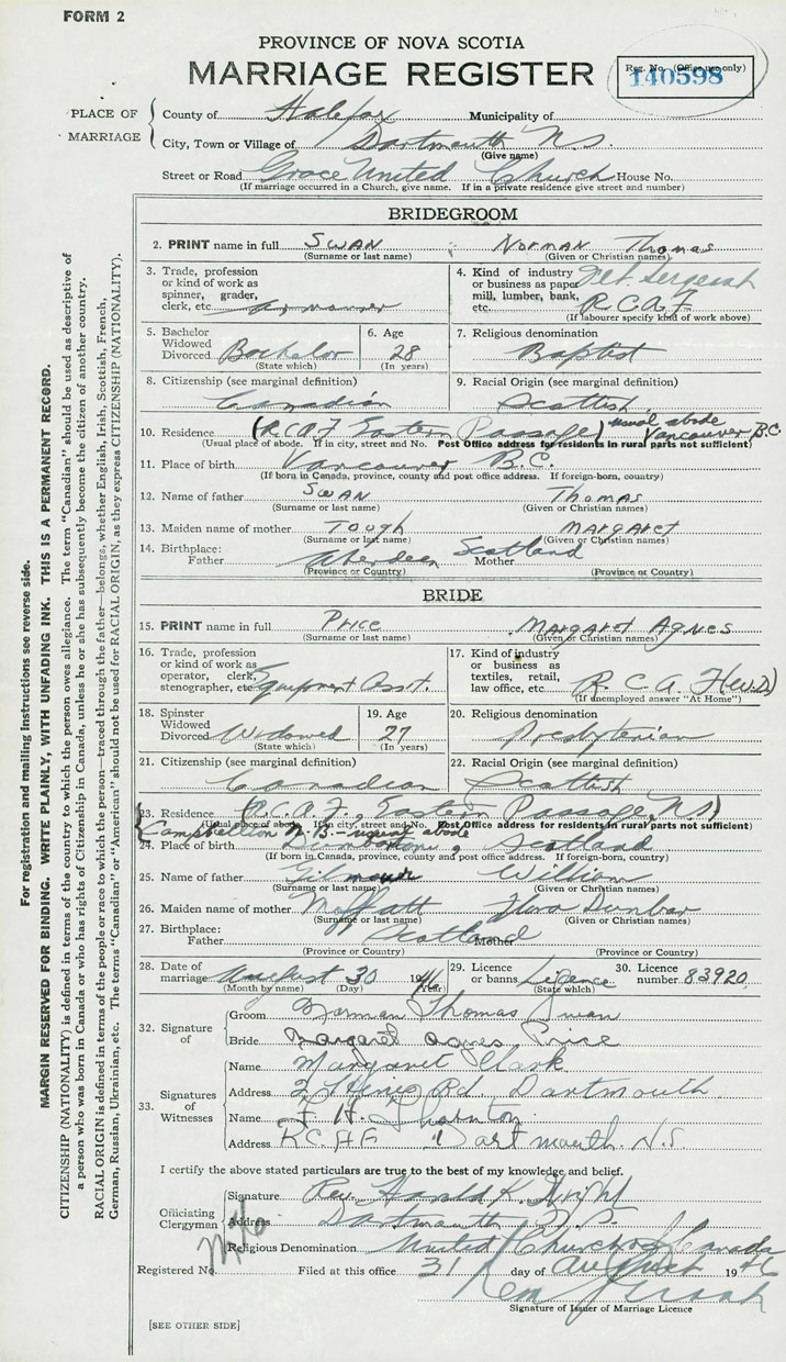Groom Norman Thomas Swan