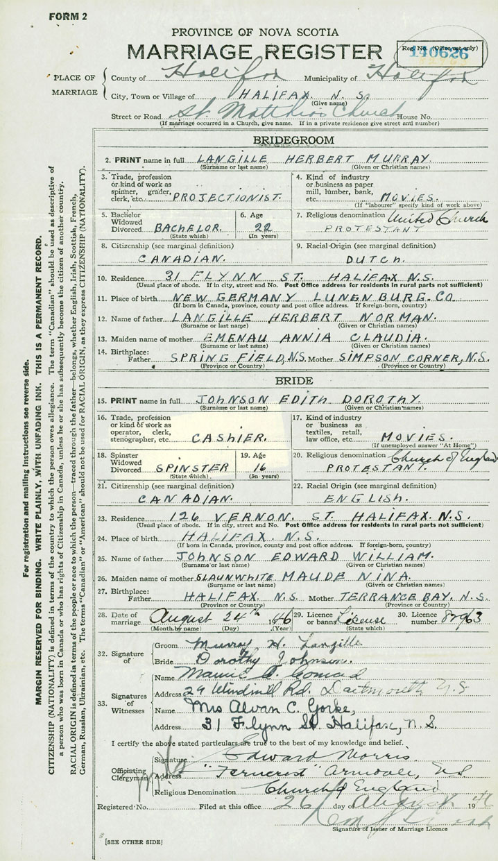 Groom Herbert Murray Langille