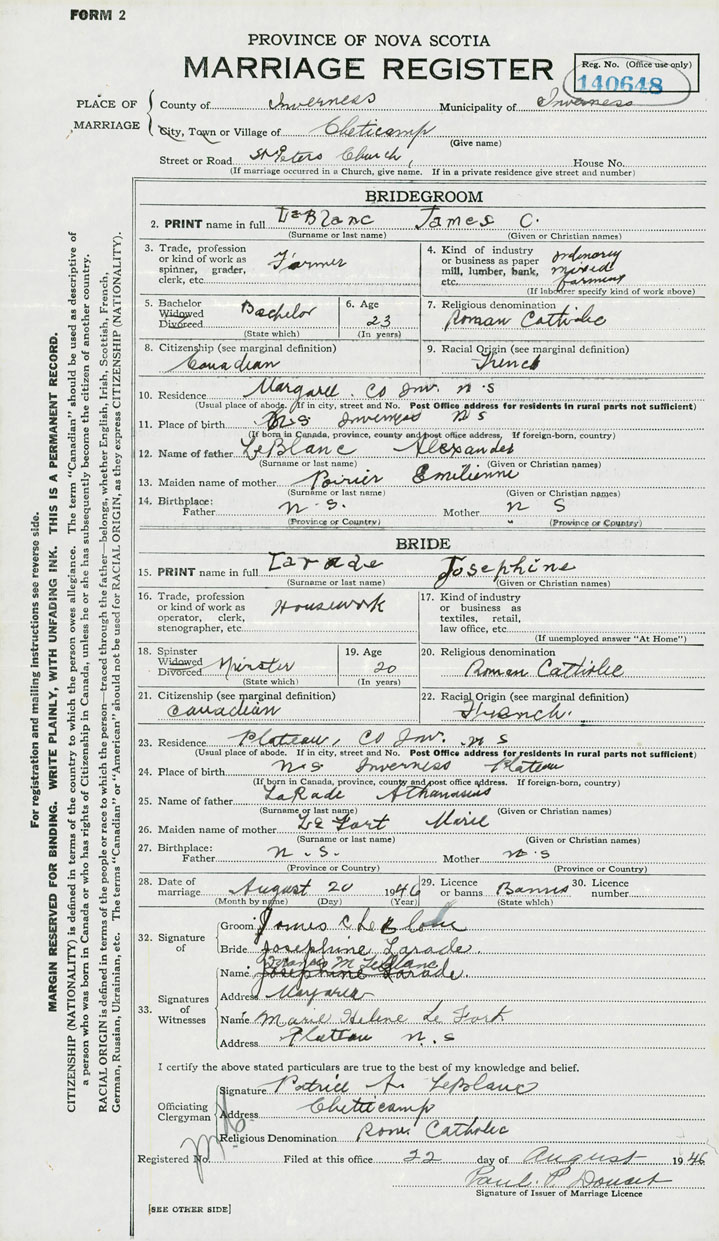 24. Place of birth Nova Scotia, Inverness County, Plateau