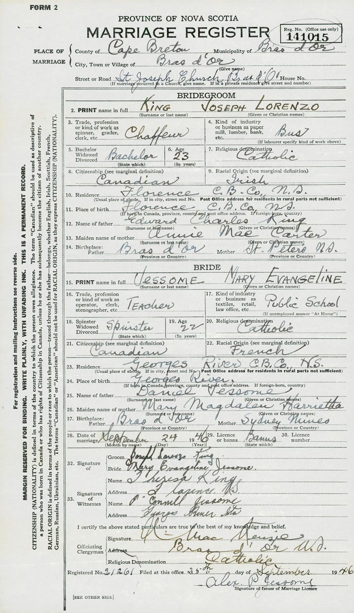 Bride Mary Evangeline Jessome