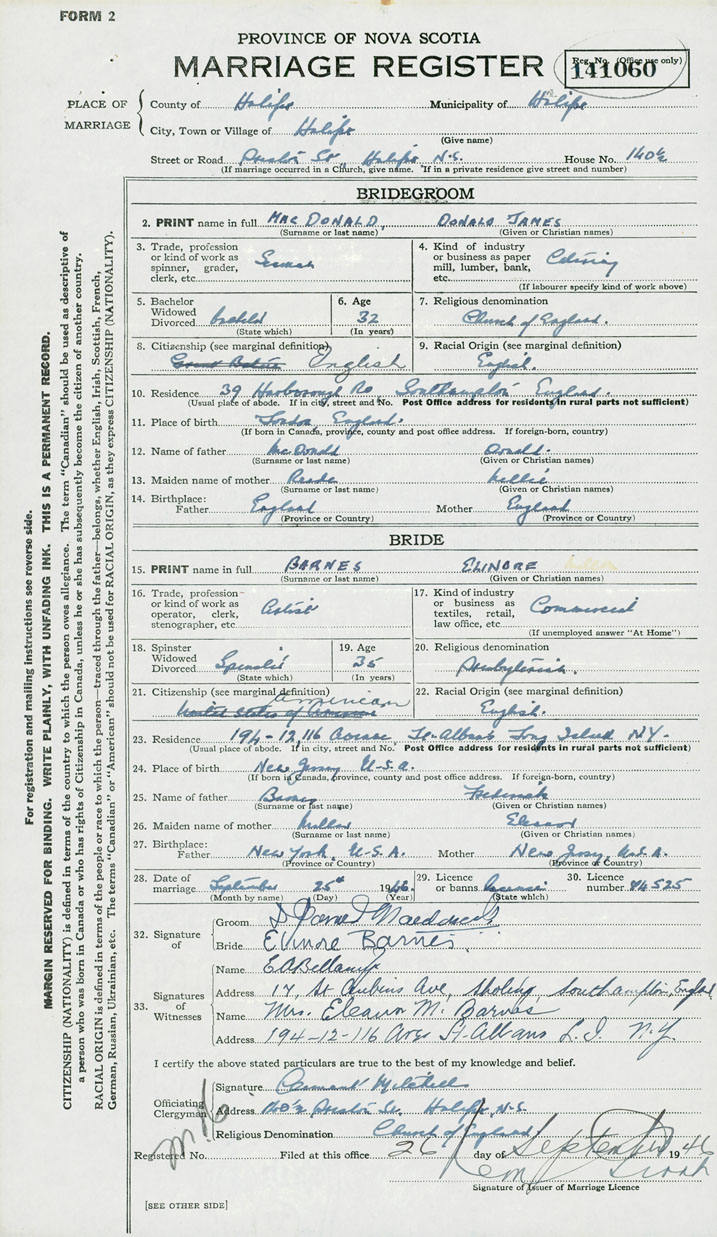 Groom Donald James MacDonald
