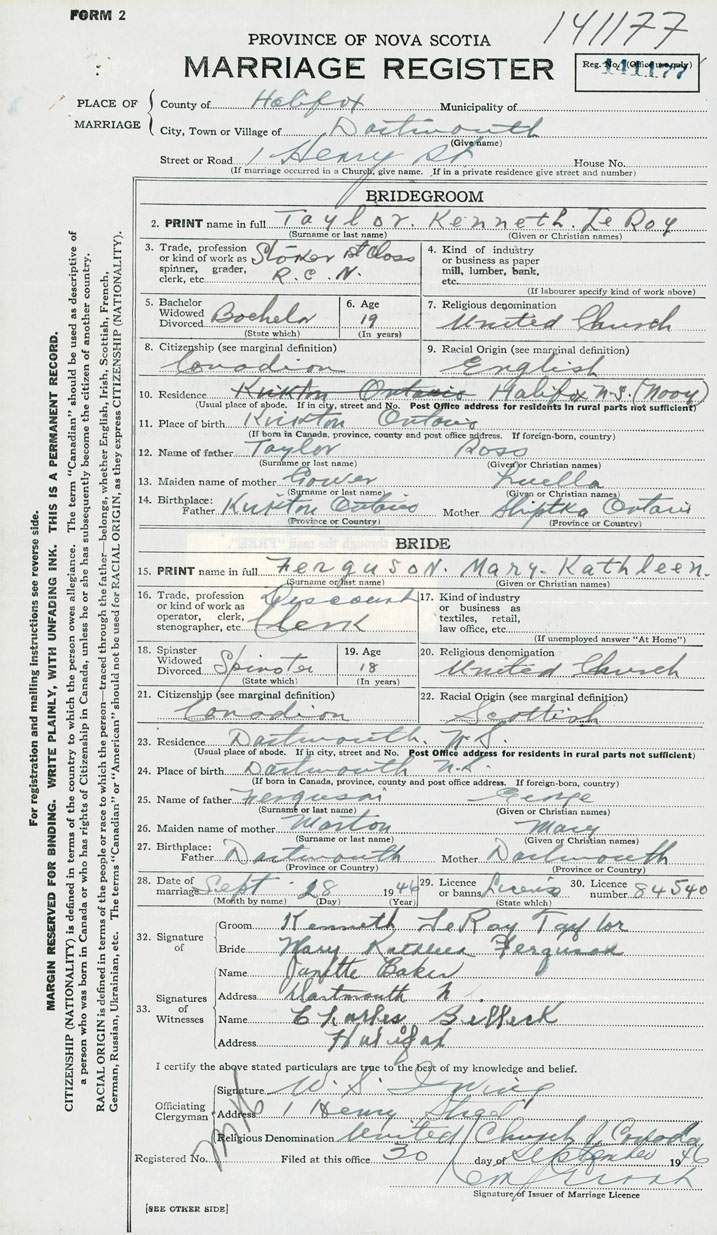 Groom Kenneth Leroy Taylor
