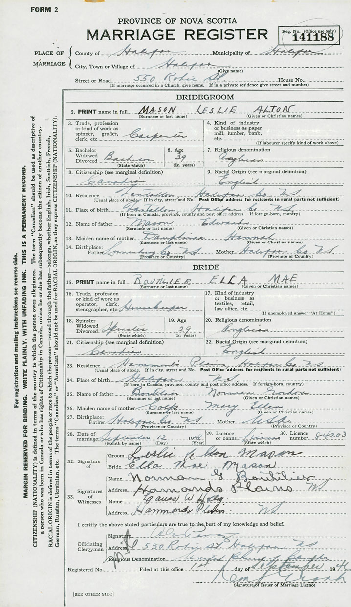 Groom Leslie Alton Mason