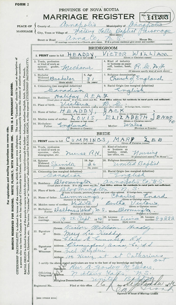Groom Victor William Headdy