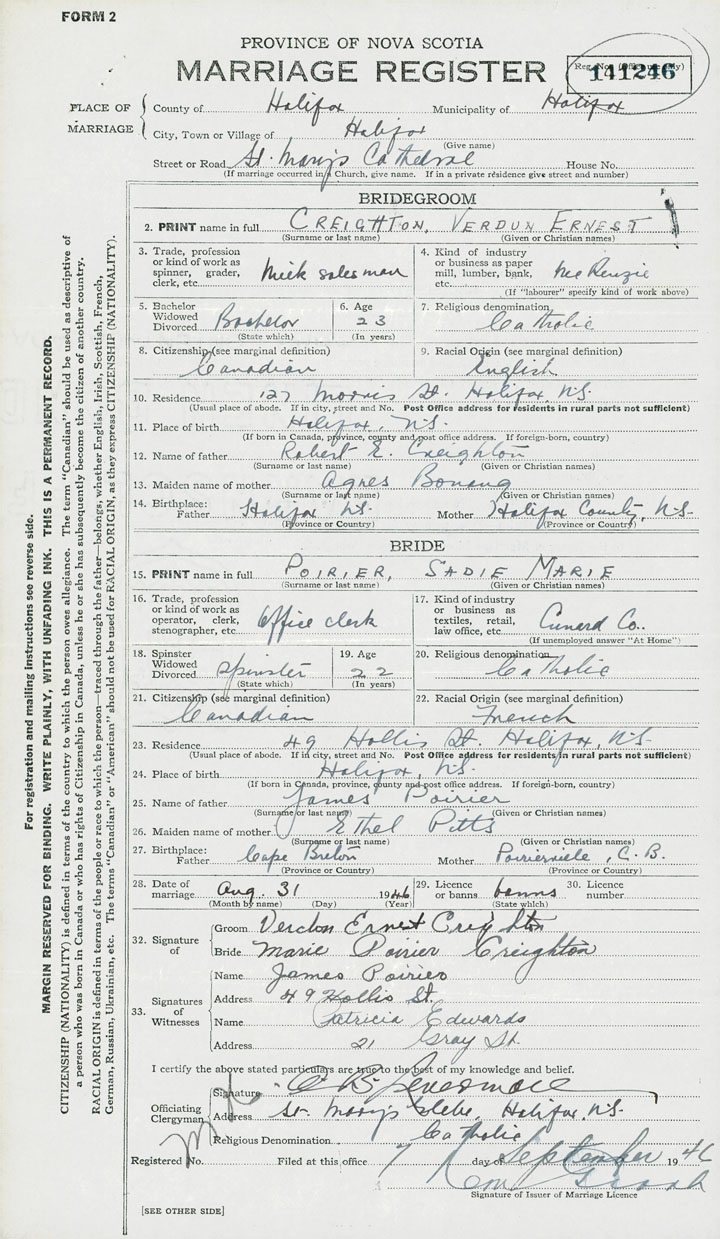 Groom Verdun Ernest Creighton