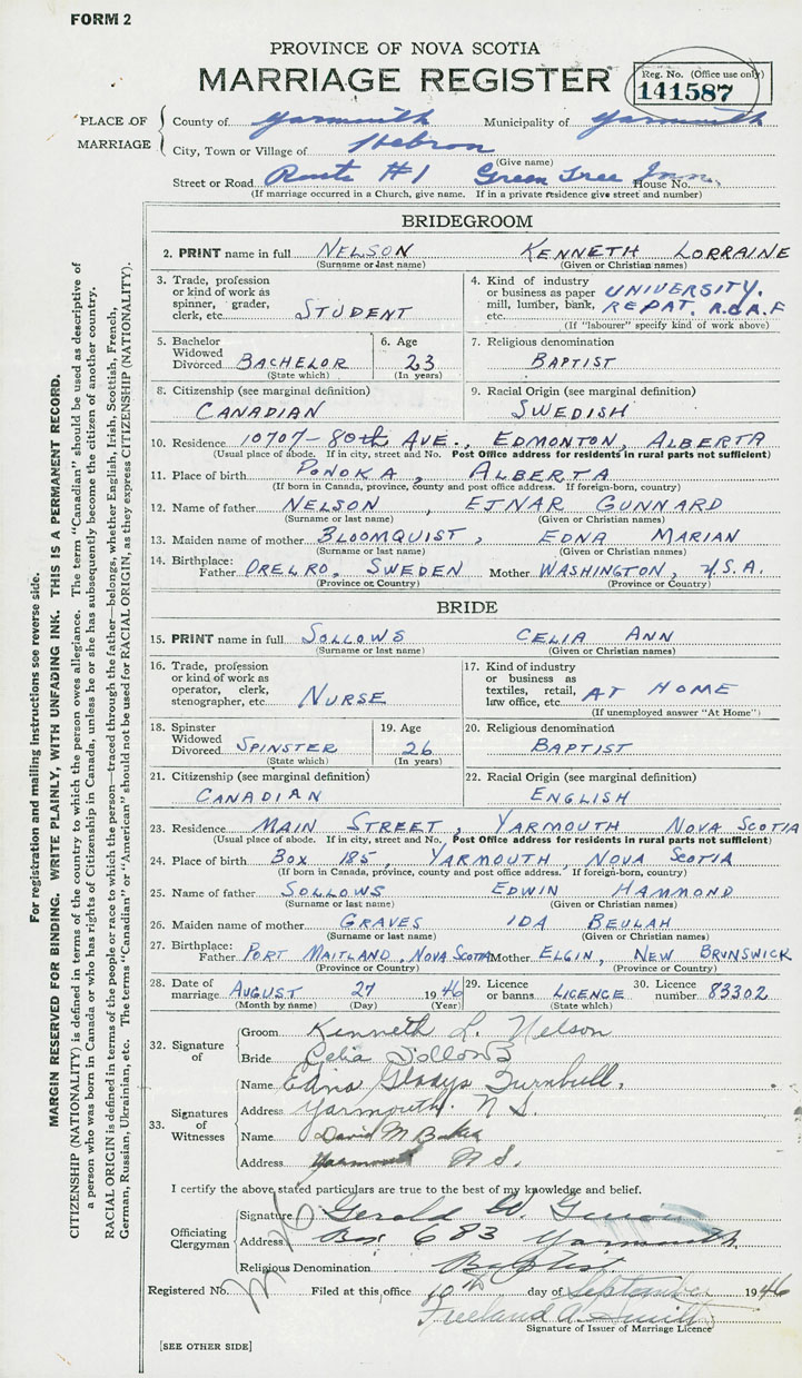 Groom Kenneth Lorraine Nelson