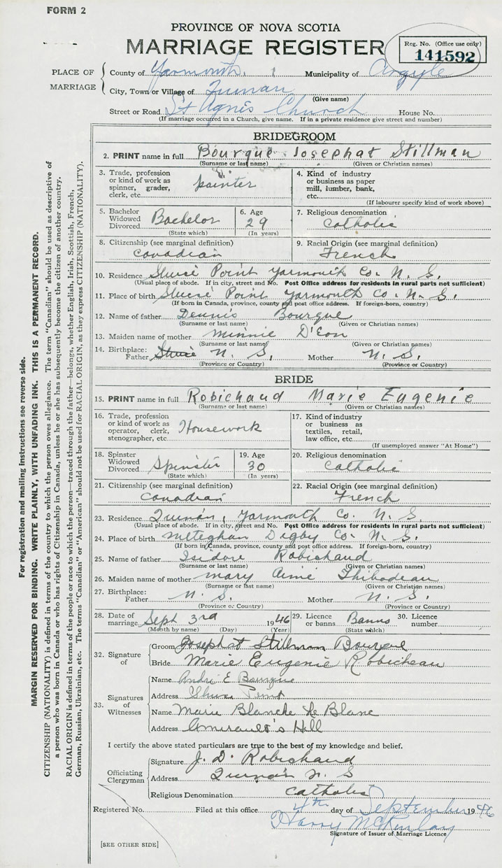24. Place of birth Meteghan, Digby County