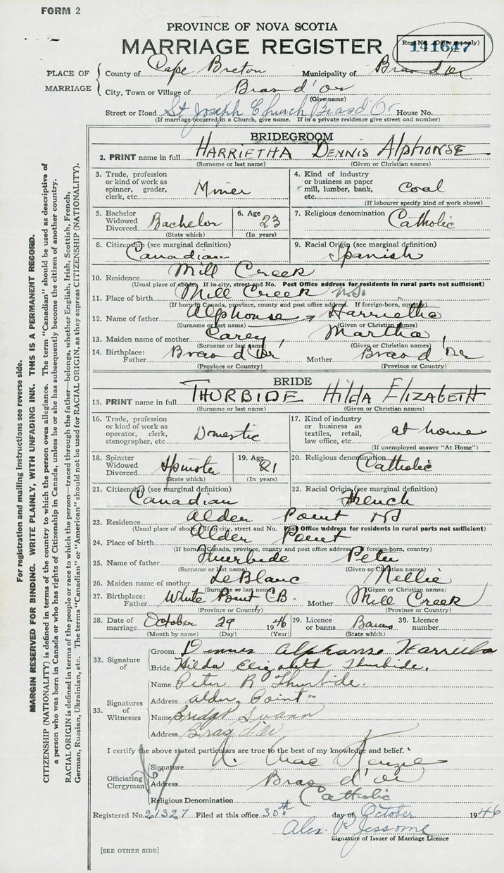 27. Birthplace Father White Point, Cape Breton Mother Mill Creek