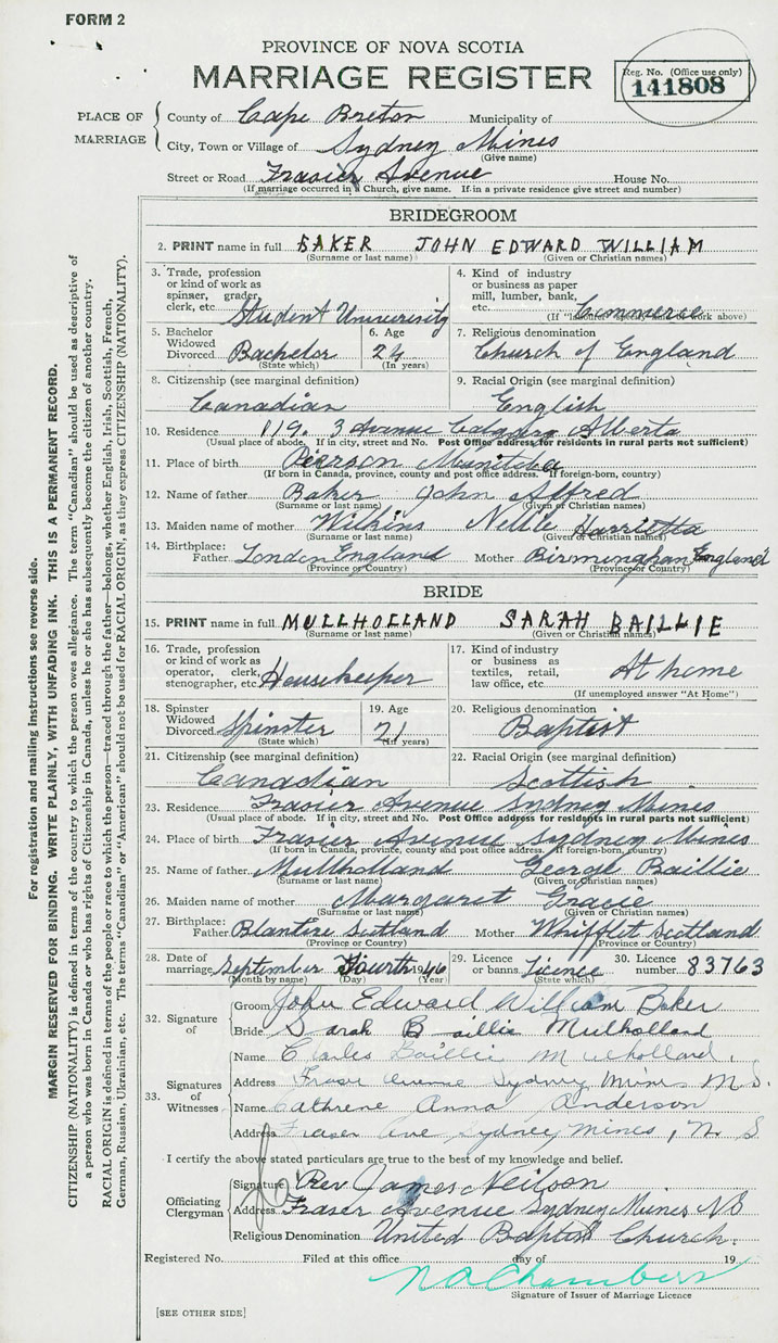 Groom John Edward William Baker