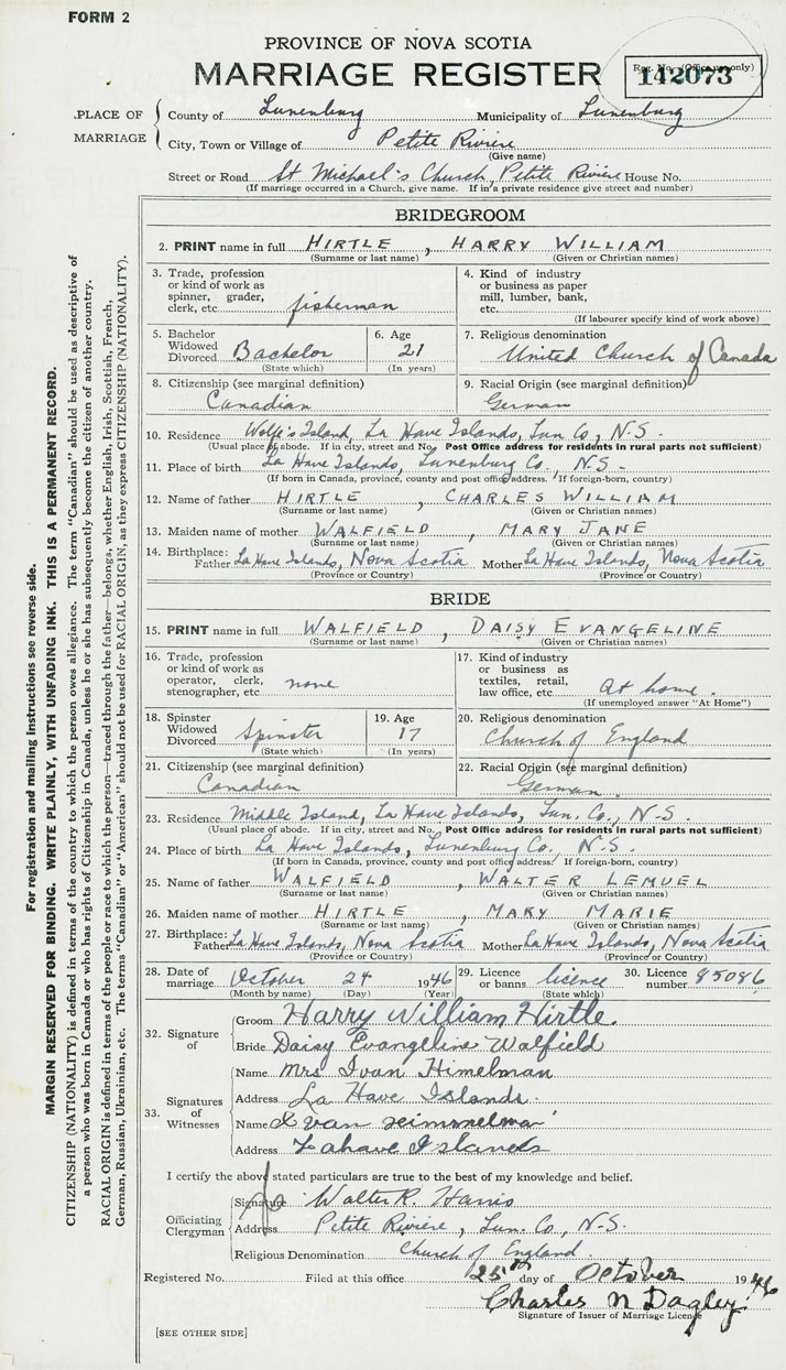 24. Place of birth LaHave Islands, Lunenburg County