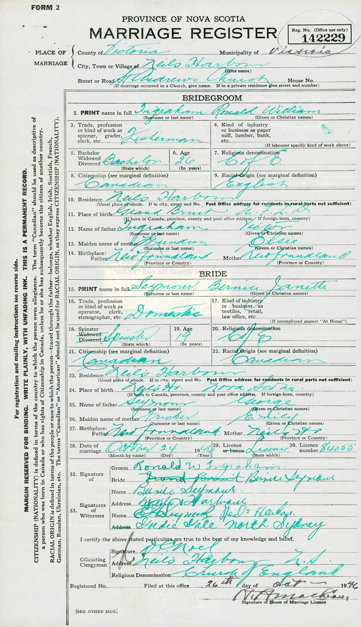Groom Ronald William Ingraham