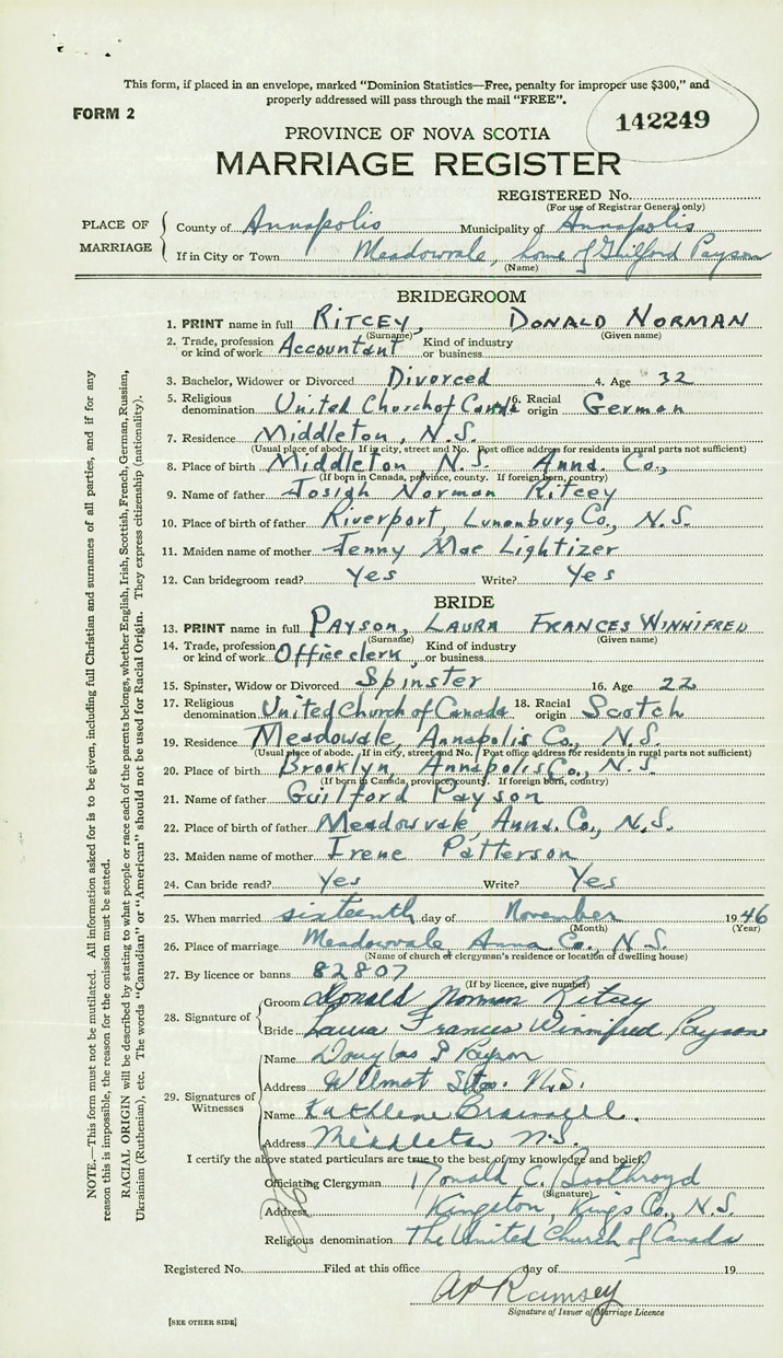 Groom Donald Norman Ritcey