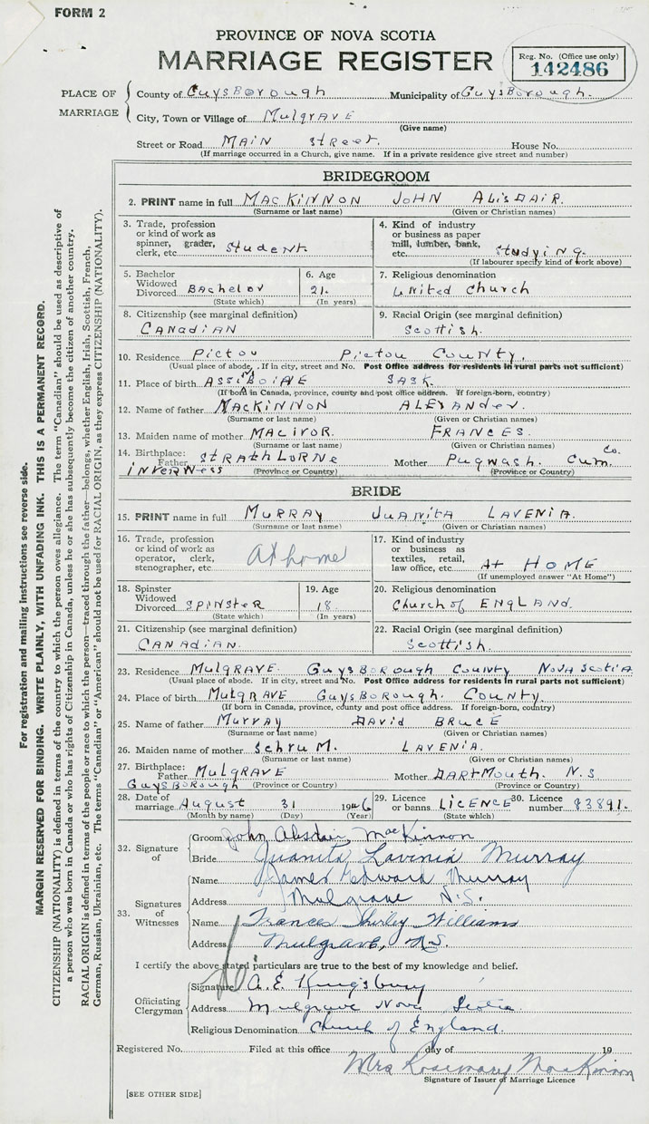Groom John Alisdair MacKinnon