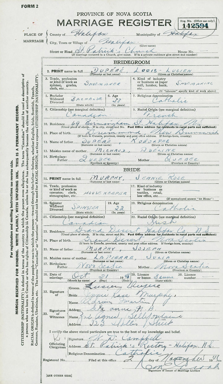2. PRINT name in full Dupere, Louis Lucien