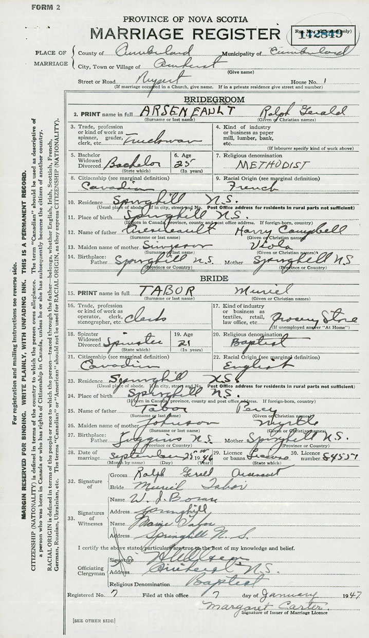 Groom Ralph Gerald Arseneault