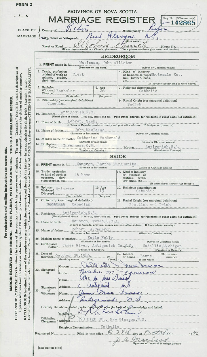 Groom John Allister MacIsaac