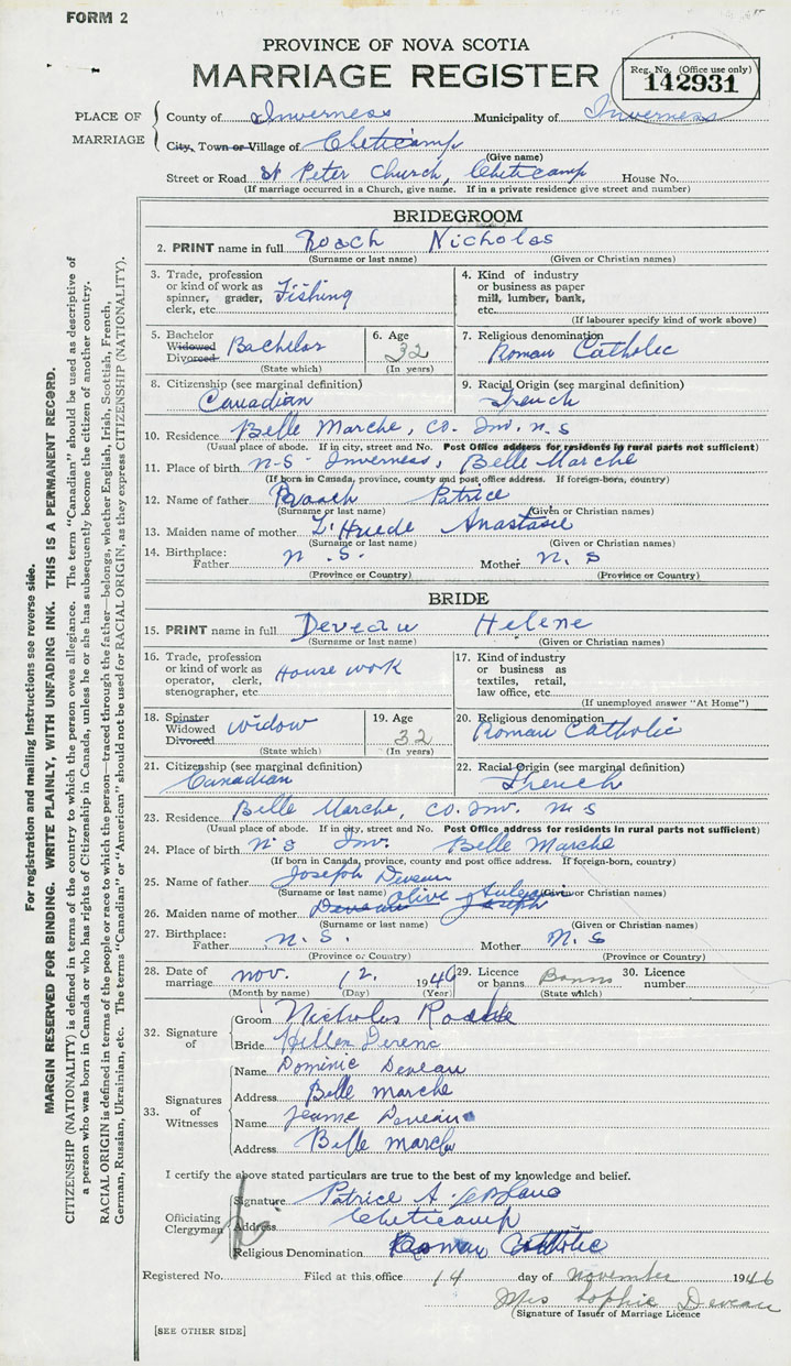 24. Place of birth Belle-Marche, Inverness County