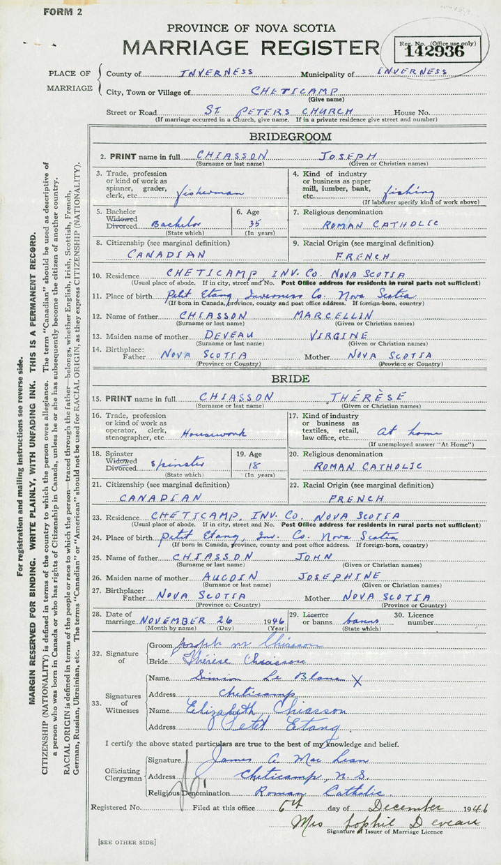 Groom Joseph Chiasson