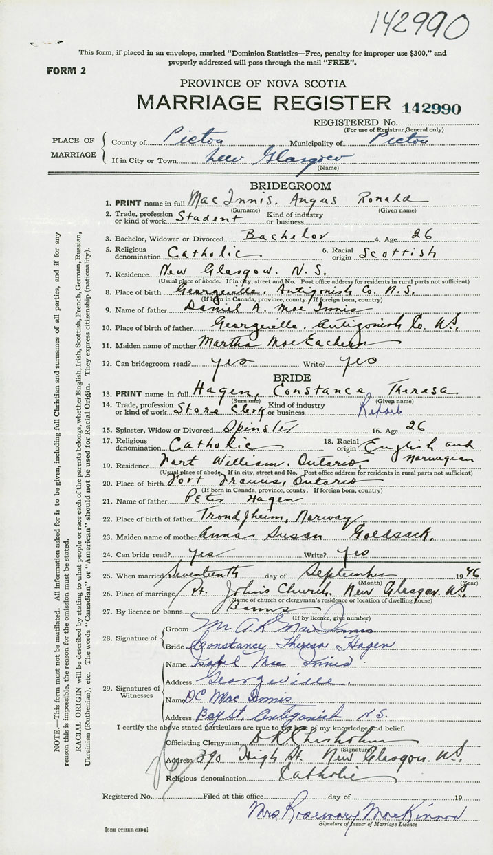 Groom Angus Ronald MacInnis