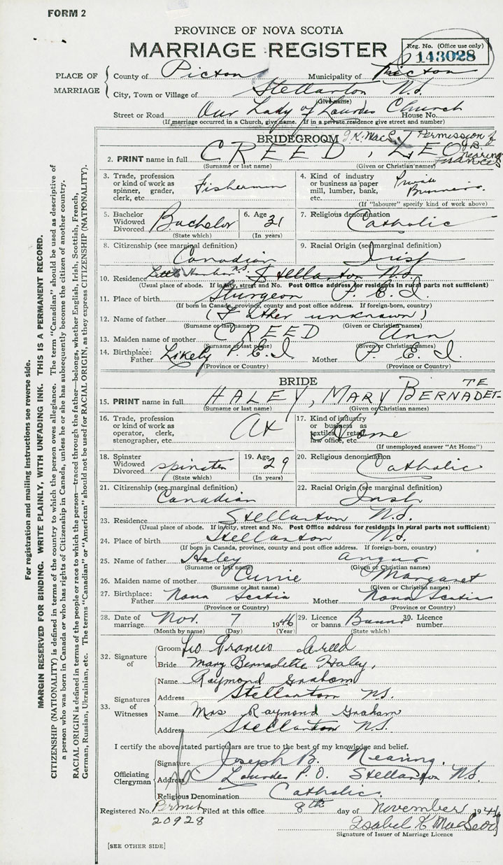 Groom Leo Francis Creed