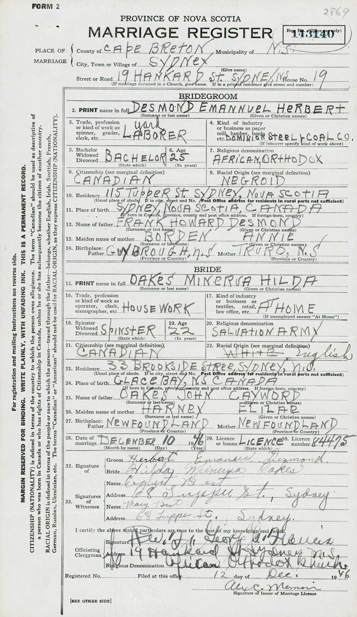 2. PRINT name in full Desmond, Herbert Emanuel