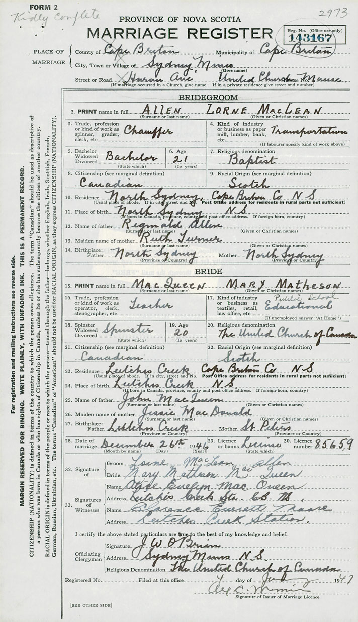 Groom Lorne MacLean Allen