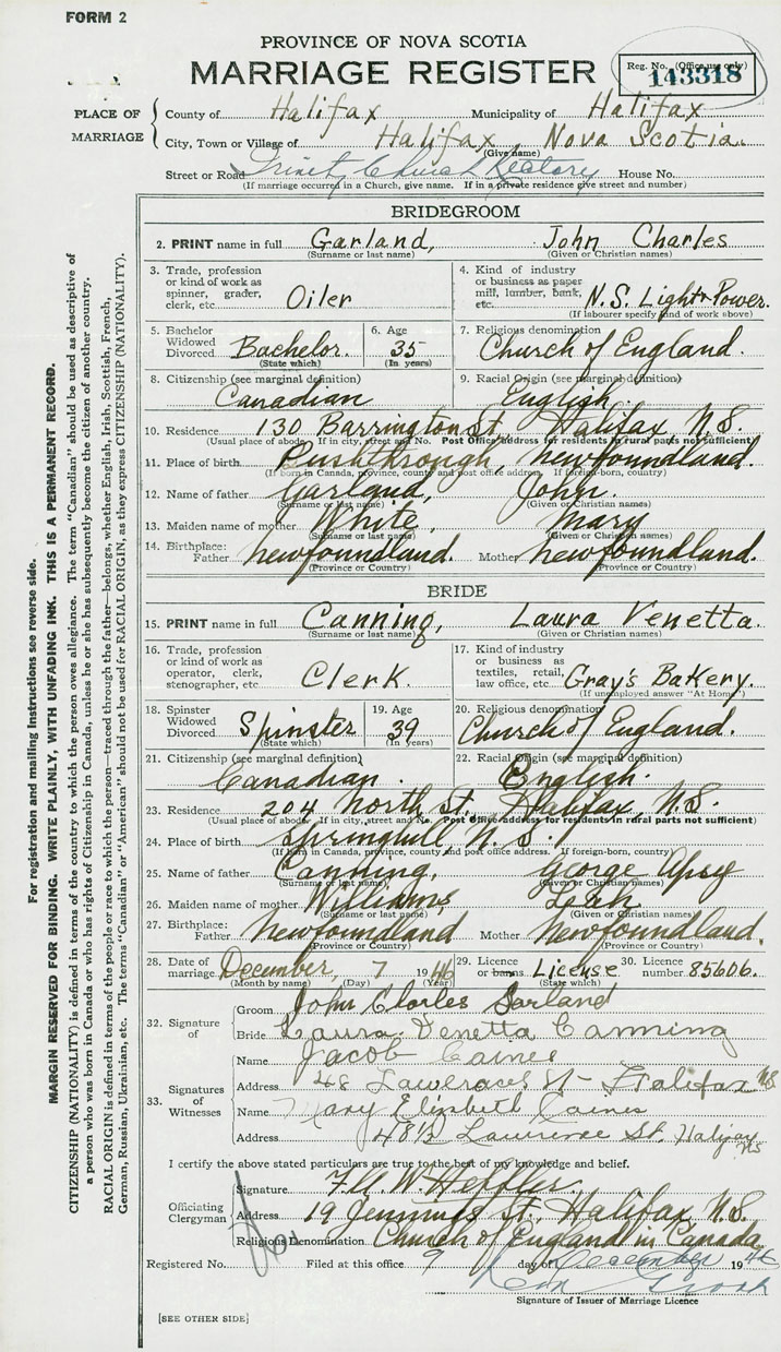 Groom John Charles Garland