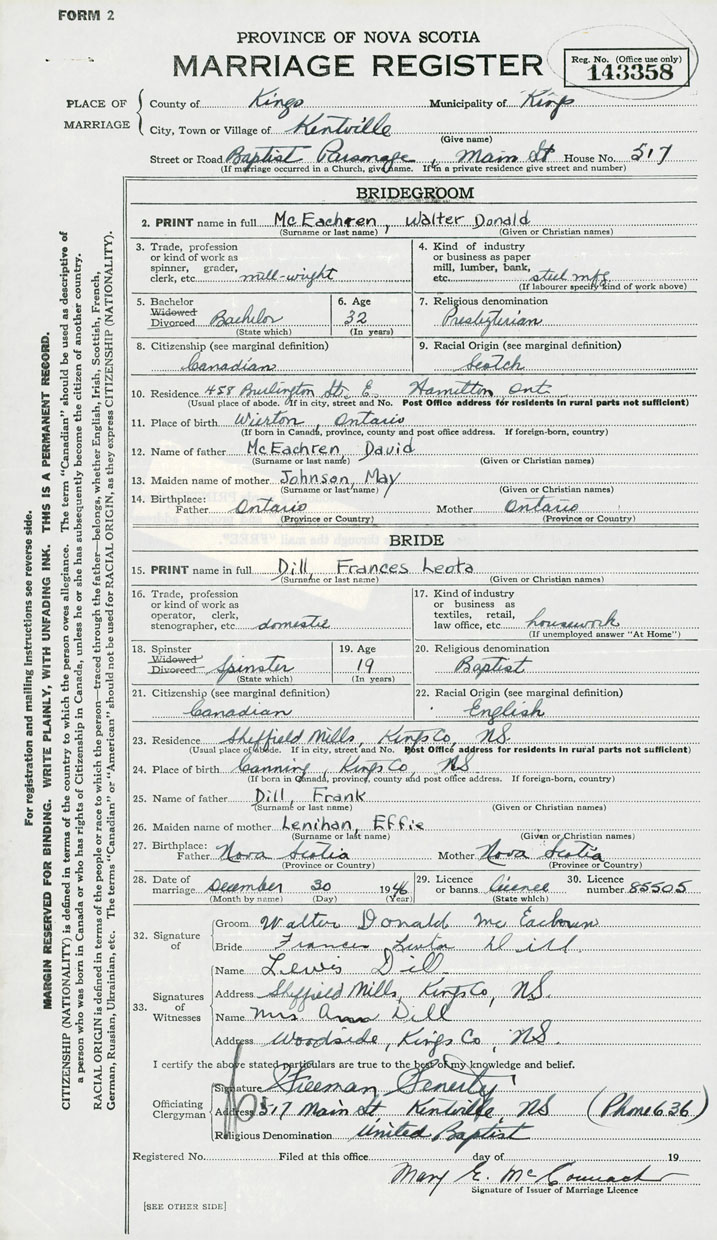 Groom Walter Donald McEachren