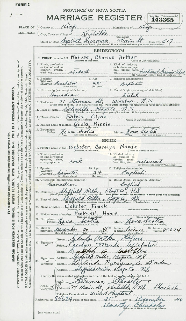 Groom Charles Arthur Rafuse
