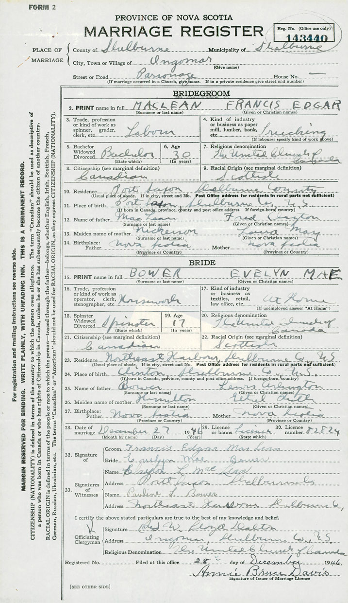 12. Name of father Fred Clayton MacLean