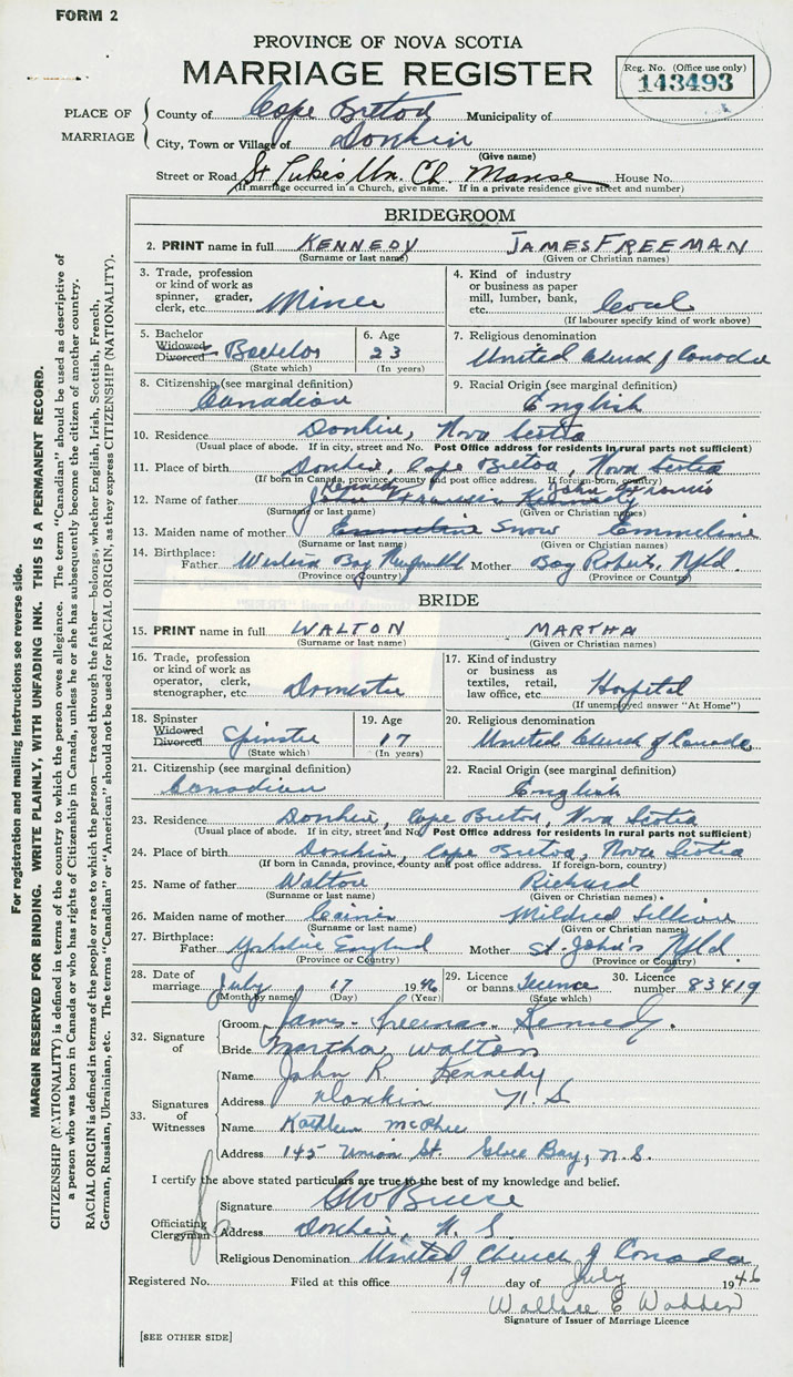 24. Place of birth Donkin, Cape Breton