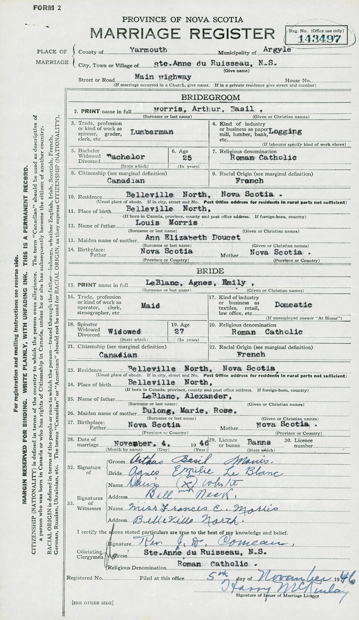 Bride Agnes Emily LeBlanc