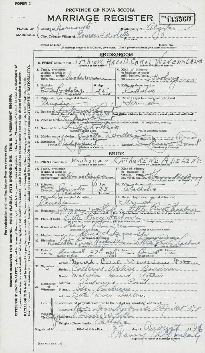 2. PRINT name in full Pothier, Harold Carol Wenceslaus